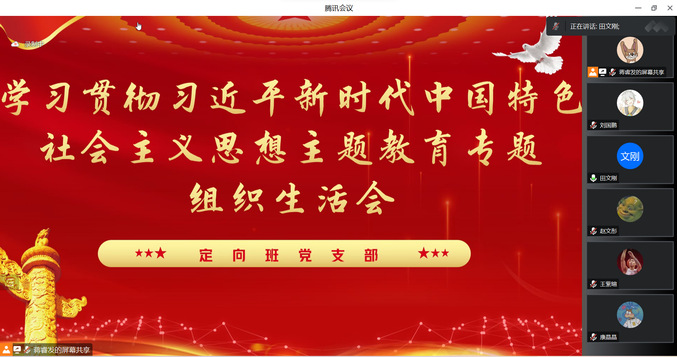 2023年9月4日21:00,定向班党支部于线上召开学习贯彻习近平新时代中国特色社会主义思想主题教育专题组织生活会,学习习近平新时代中国特色社会主义思想,开展自我批评和相互批评。本次会议由党支部书记田文刚同志主持,定向班党支部7名正式党员、5名预备党员参与本次会议。