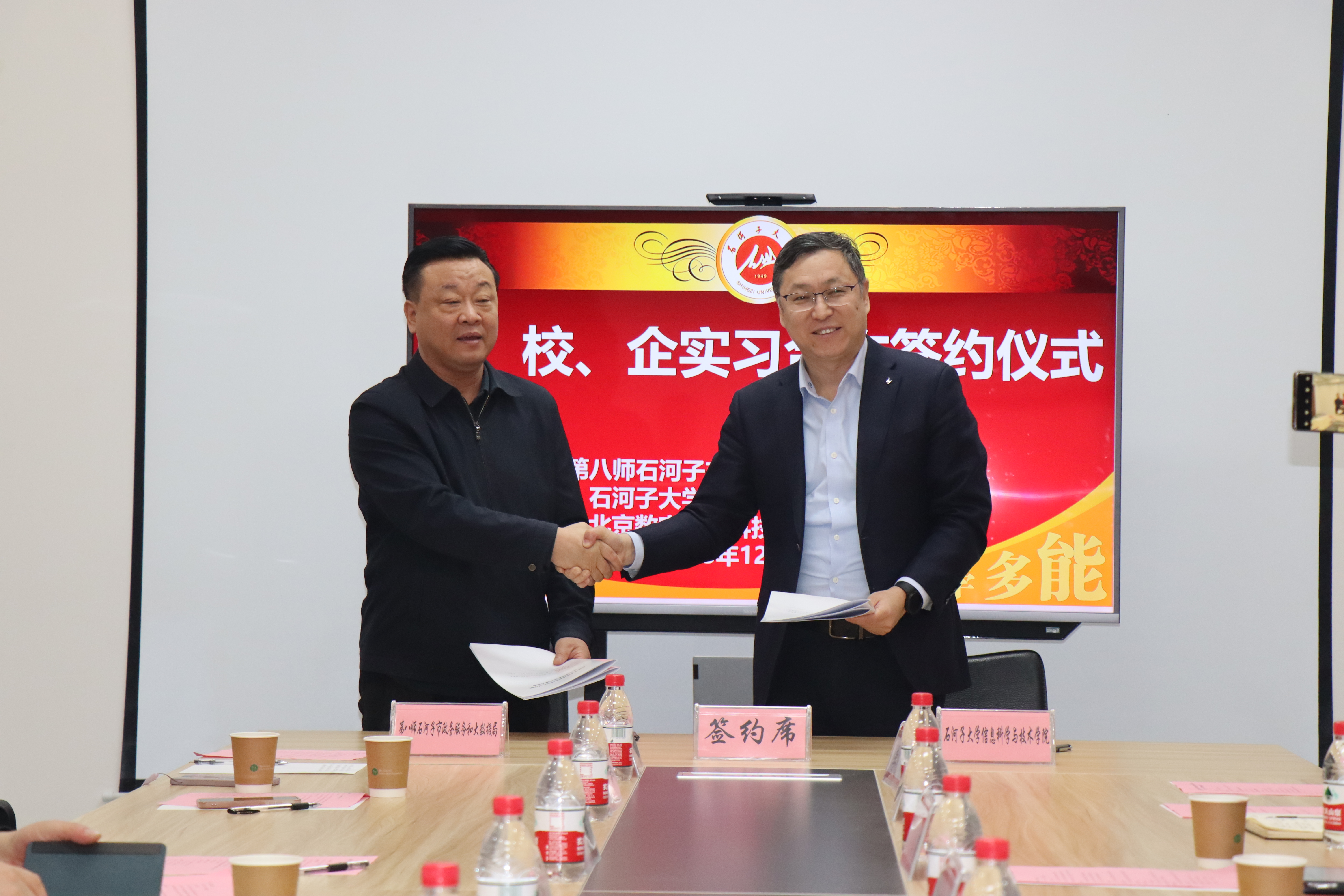座谈会结束之后,李志刚经理代表yl23455永利集团分别与第八师石河子市政务服务和大数据局和北京数字政通科技股份有限公司签署实习合作协议。
