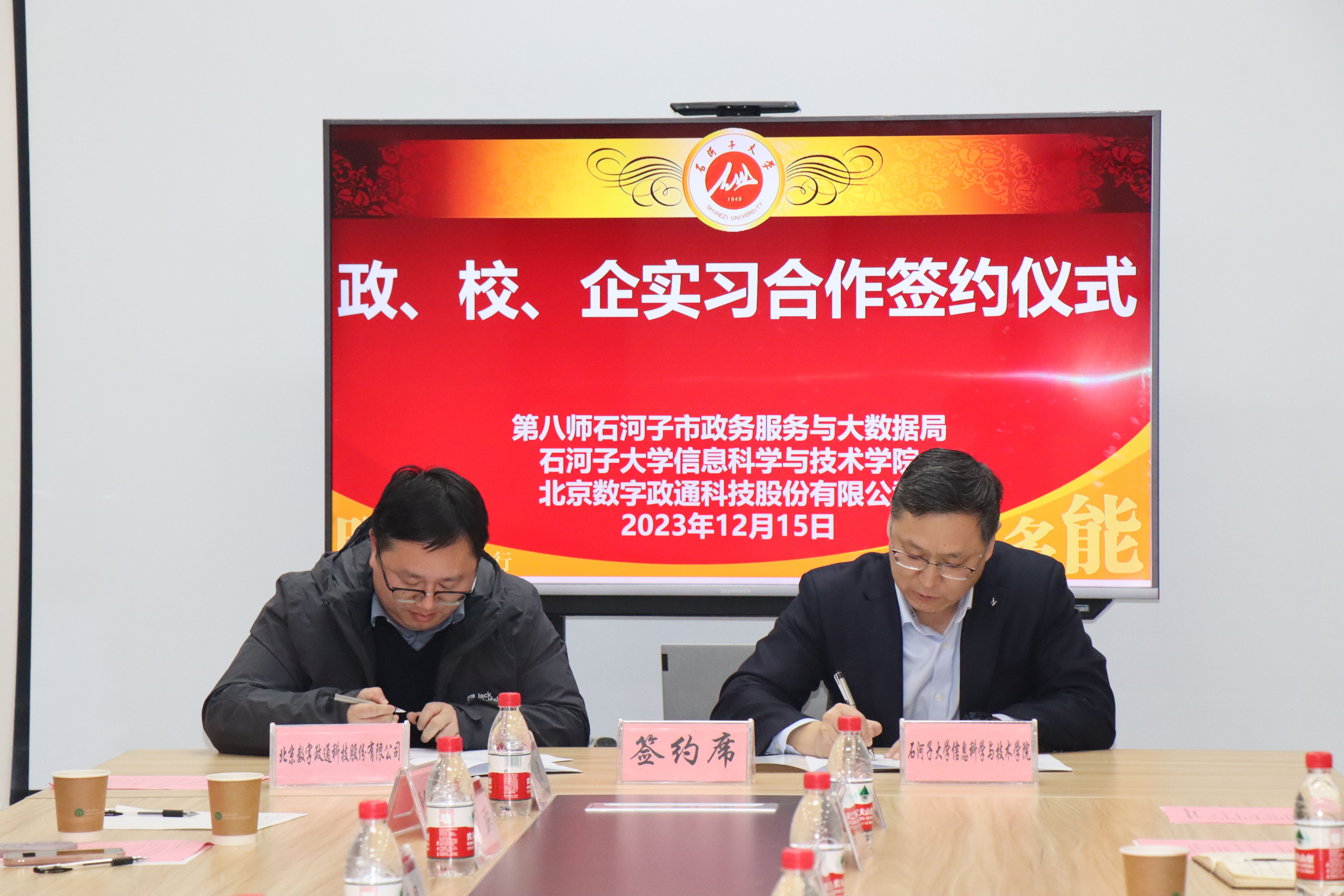2023年12月15日下午,第八师石河子市政务服务和大数据局和北京数字政通科技股份有限公司一行8人访问公司,三方座谈交流并签订政、校、企实习合作协议。签约仪式由yl23455永利集团副经理高攀主持。