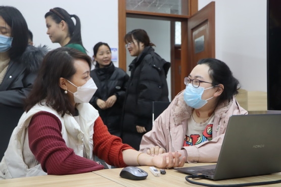 讲座后,两位专家通过“观舌象”、“望闻问切”给公司女教职工把脉,并根据实际情况提出干预、调理建议。通过这次活动,它不仅提升了女性对自身健康的关注,也促进了教职工群体对健康生活方式的重视。