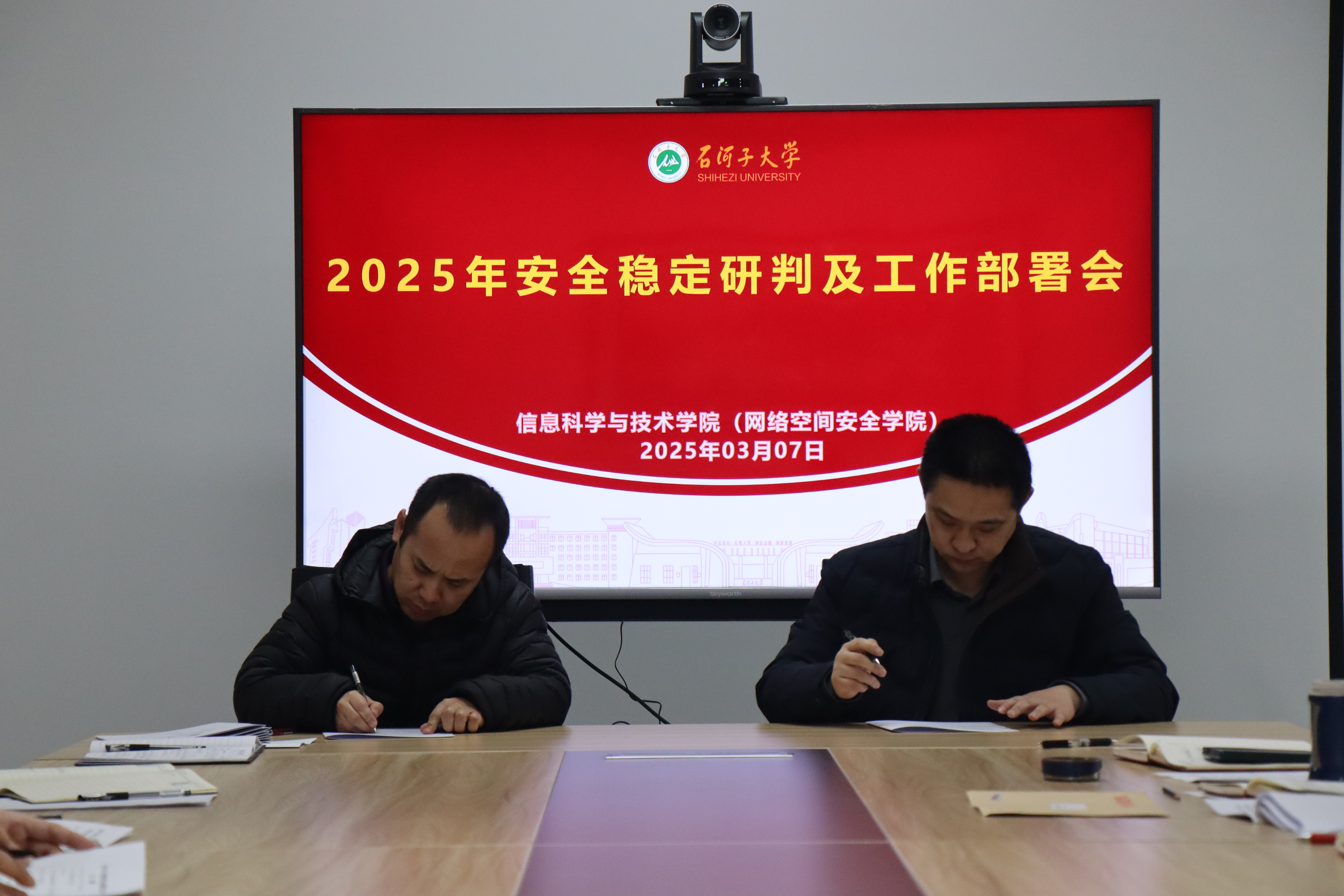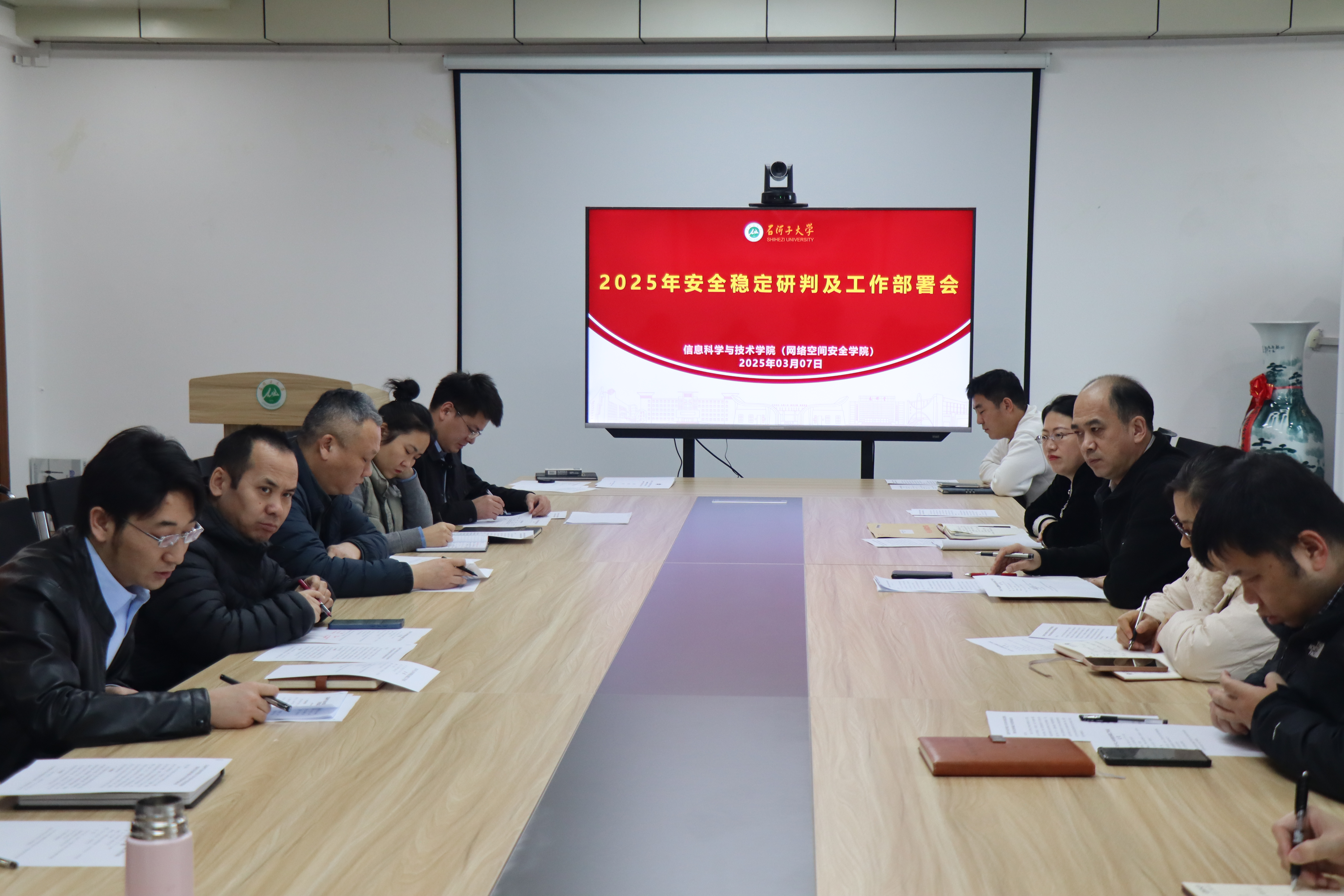 2025年3月7日,公司安全稳定研判及工作部署会在公司三楼会议室召开。会议由公司党委书记刘文晓主持,公司在家院领导、各系部主任、各党支部书记、各办公室主任及团委书记参加了此次会议。