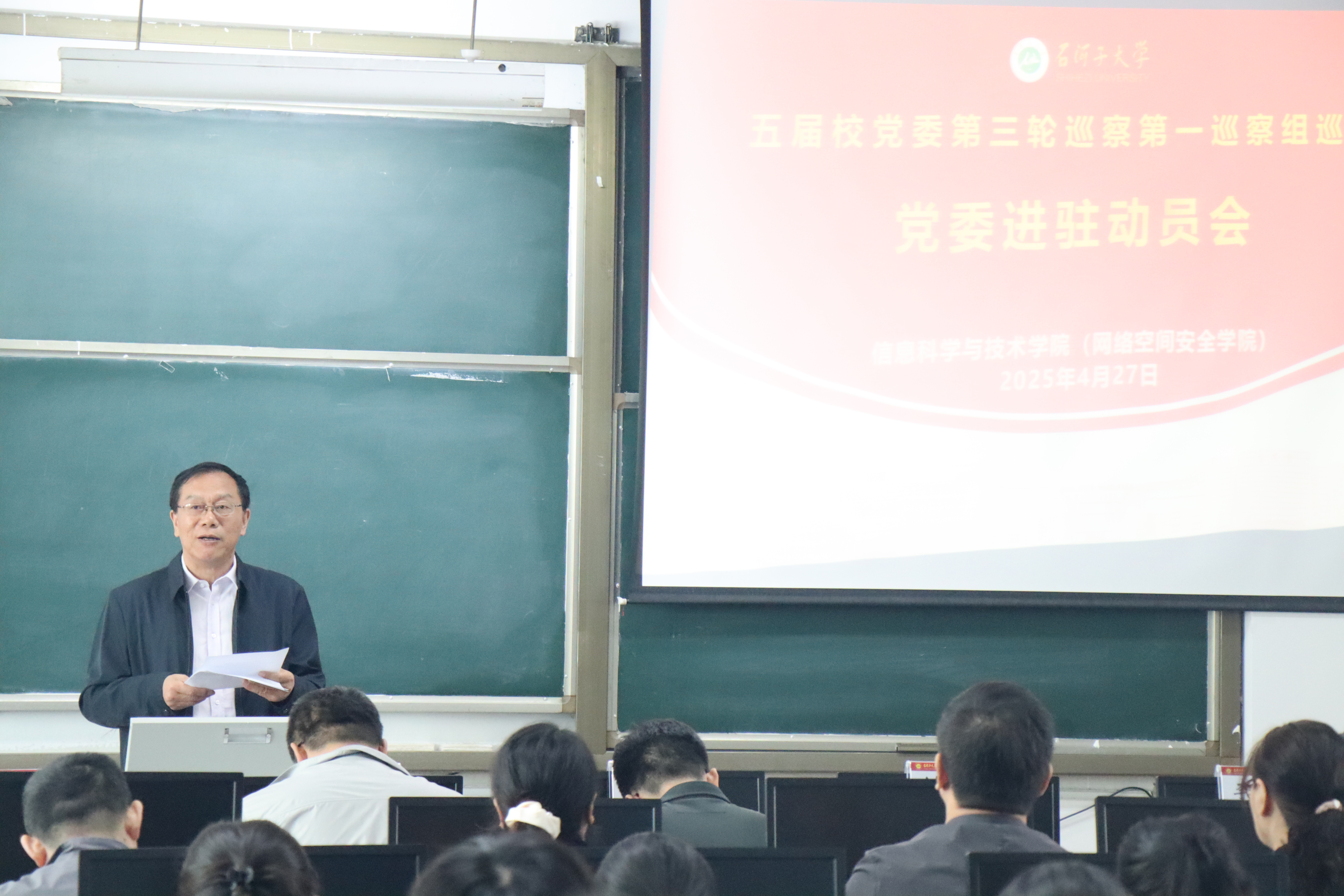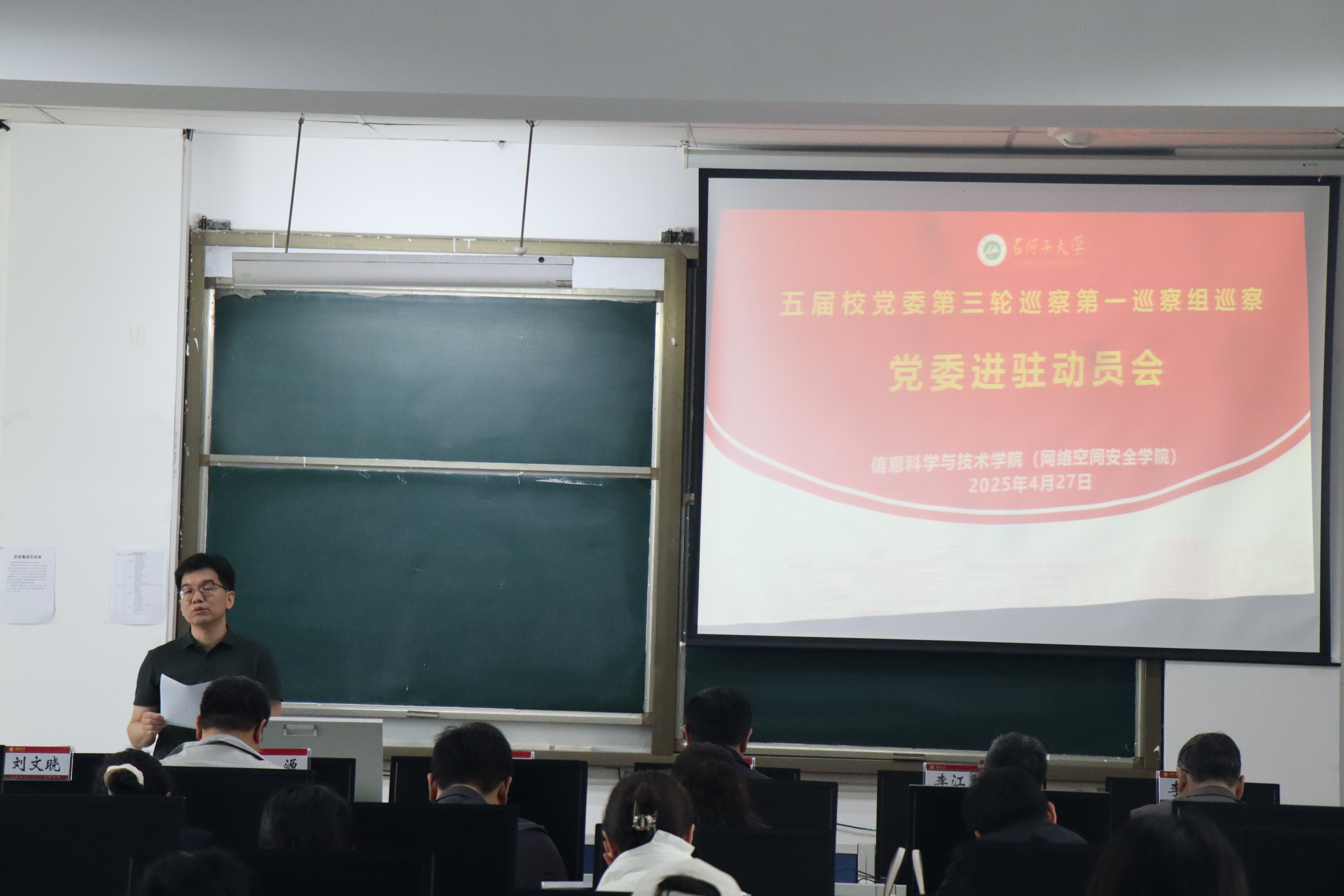 2025年4月27日五届公司党委第三轮巡察第一巡察组巡察信息与科学技术公司(网络空间安全公司)党委进驻动员会在绿2-120召开。公司党委巡察工作领导小组成员、yl23455永利纪委副书记胡昌娃参加动员,会议由公司党委书记刘文晓主持。