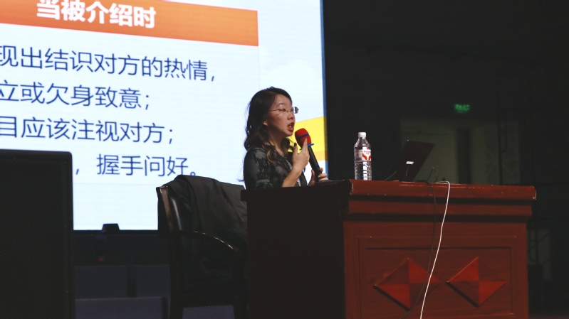 马杰老师主讲老员工文明礼仪教育,围绕礼仪规范与独立能力展开,她通过互动方式引导新生重视个人健康管理与独立能力的培养,并分享了有效沟通与信息处理的方法。结合校园实际场景,讲解握手、着装、电话等日常礼仪,引导新生做好健康管理与时间规划,提升综合素养,尽快融入校园生活。