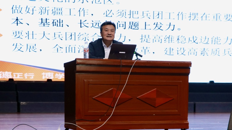 梁红军教授在“传承兵团精神 铸牢中华民族共同体意识”专题讲座中深刻阐述,组建兵团是我们党创新推进屯垦戍边的重大战略创举,由此孕育的以“热爱祖国、无私奉献、艰苦创业、开拓进取”为核心的兵团精神,是兵团人在实践中铸就的宝贵精神财富。他强调,大力弘扬兵团精神,对于凝聚人心、增进文化认同,在新时代铸牢中华民族共同体意识具有重要而深远的意义。