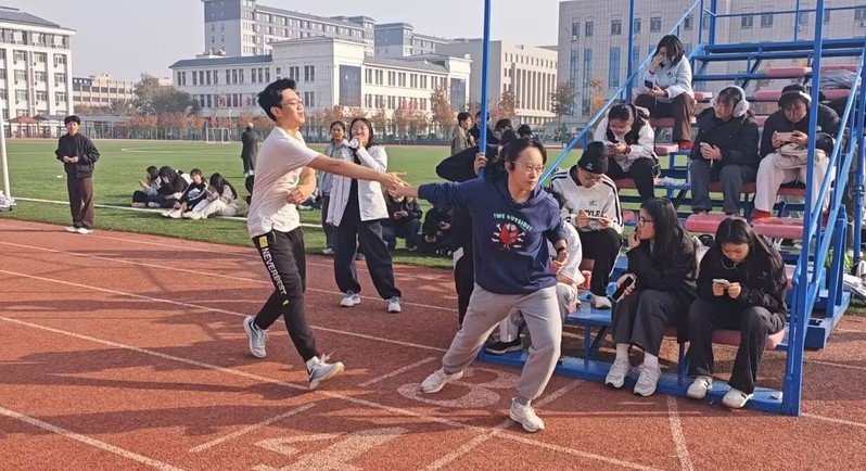 随着主持人倒计时“3、2、1,开跑”的号令响起,比赛正式拉开帷幕。赛场上,2025级新生队伍精神饱满、斗志昂扬,展现出蓬勃朝气与不服输的拼搏精神,每一次摆臂、每一个步伐都洋溢着青春的活力;而2023、2024级代表队则凭借丰富的参赛经验和默契的团队配合,在节奏控制与交接棒环节中展现出娴熟的技巧,沉着应战、稳扎稳打。各队选手你追我赶,赛道上满是热血拼搏的身影,加油呐喊声此起彼伏,响彻北苑新区赛场。
